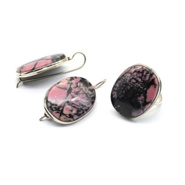 Кольцо и серьги родонит "Овал"