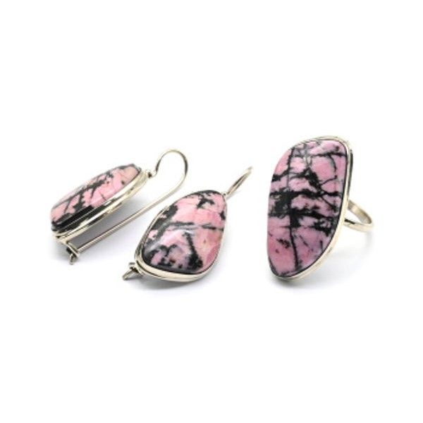 Брошь с родонитом в посеребрении " Грация " 47*33мм.