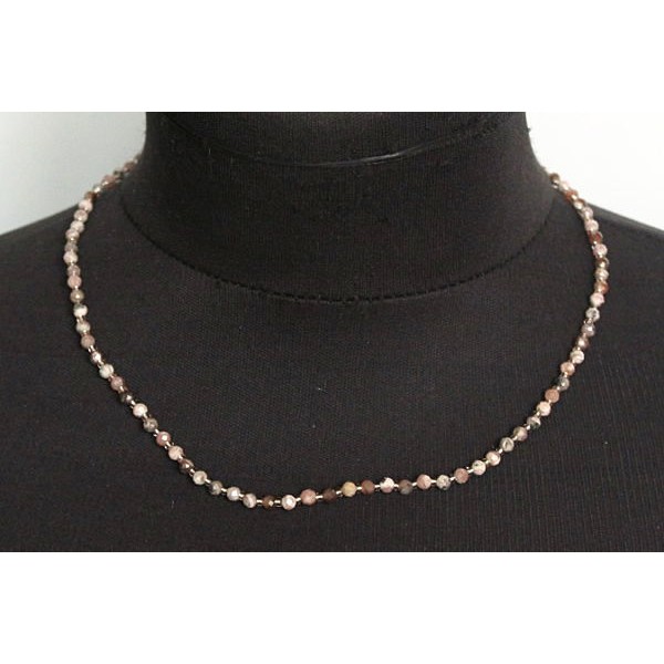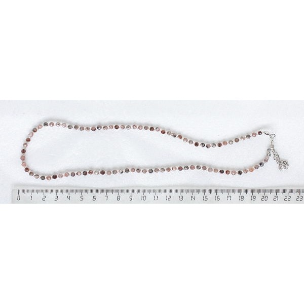 Бусы из родохрозита, шарик 4мм огранка, 46см + цепочка 5см