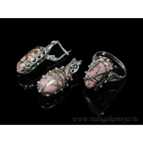 Кольцо и серьги с родонитом