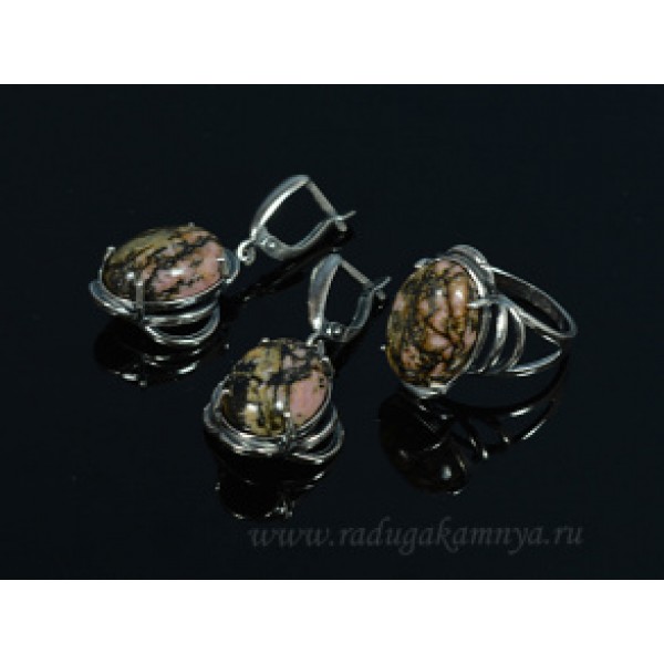 Кольцо и серьги с родонитом