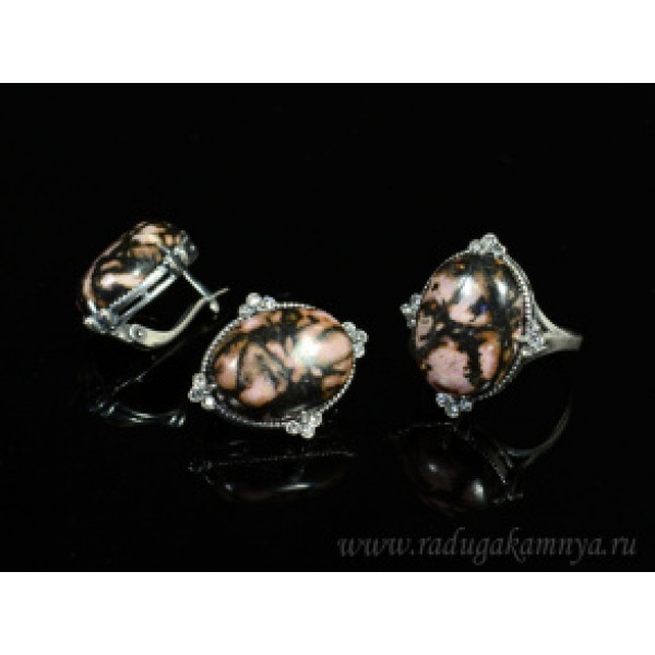 Кольцо и серьги с родонитом