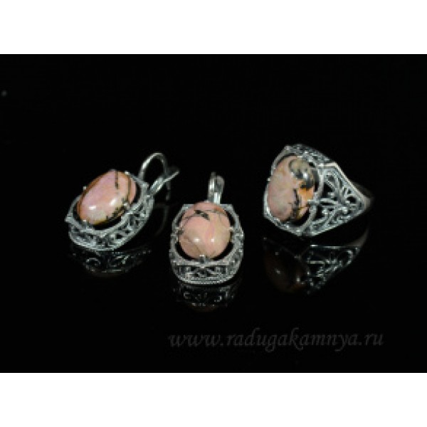 Кольцо и серьги с родонитом