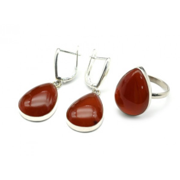 Кольцо и серьги сердолик "Капля"