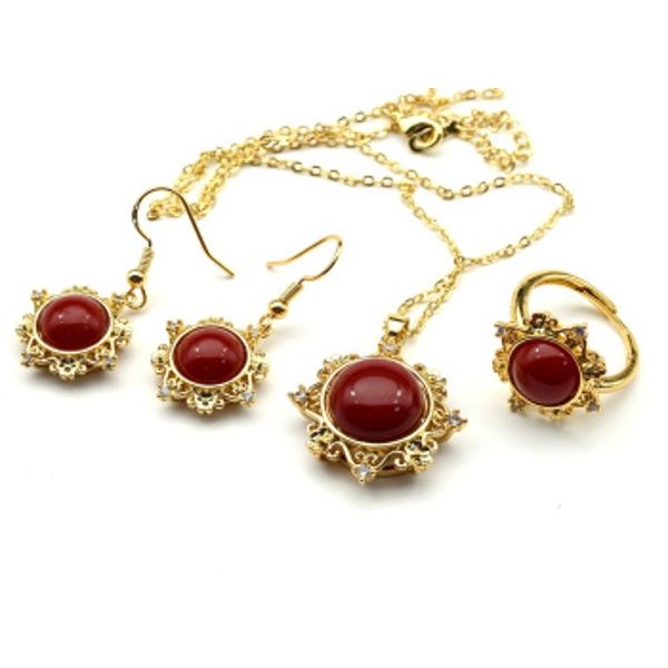 Комплект украшений Кольцо, серьги, кулон с сердоликом (имитация) и цирконом