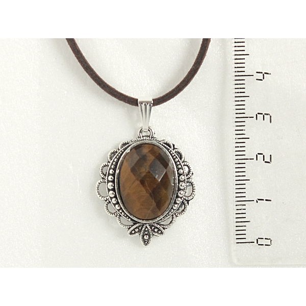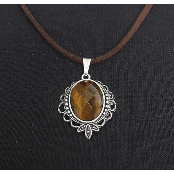 Кулон из тигрового глаза, овал 18х13мм огранка, оправа "трилистник"