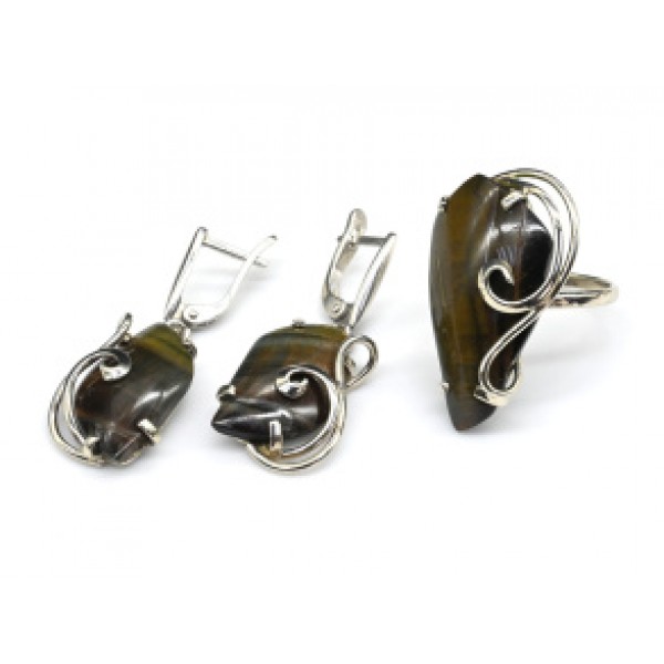 • Кольцо и серьги с тигровым глазом