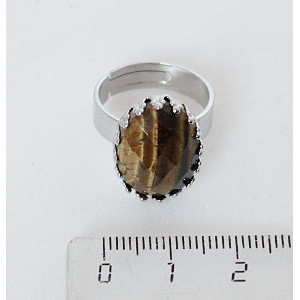 Кольцо с тигровым глазом, овал 18х13мм, огранка, безразмерное