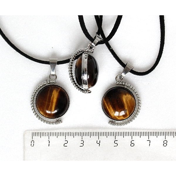 • Кулон из тигрового глаза, круг 20мм, оправа "глобус", двусторонний