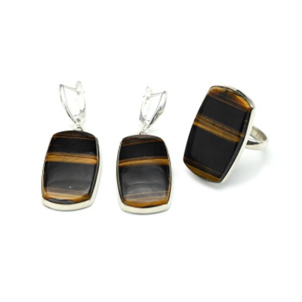 Кольцо и серьги тигровый глаз "Прямоугольник"