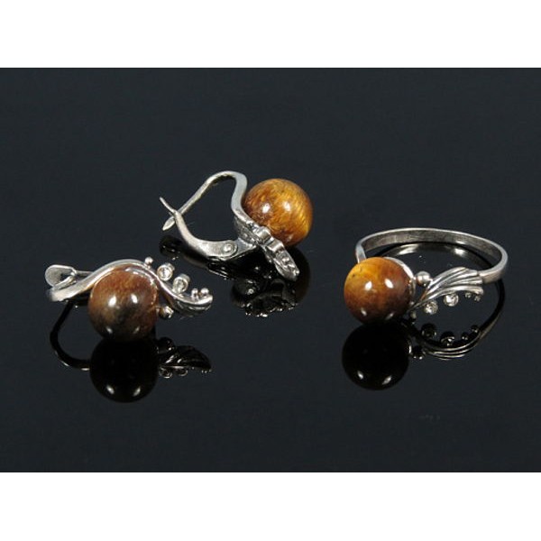 Кольцо Серьги с тигровым глазом