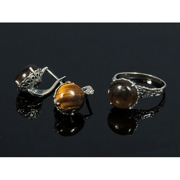 Кольцо Серьги с тигровым глазом