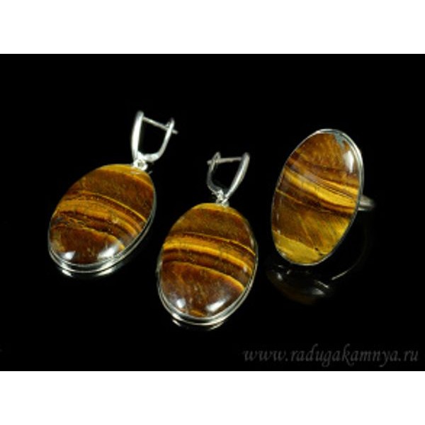Кольцо и серьги тигровый глаз овал