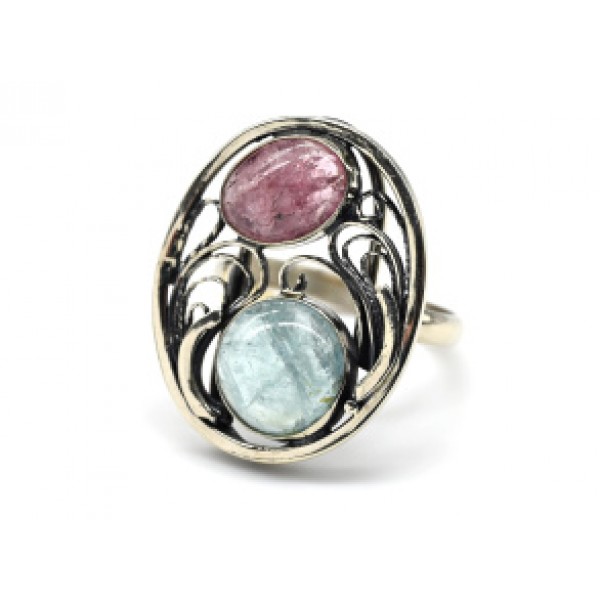 Кольцо турмалин с аквамарином 22*27мм.
