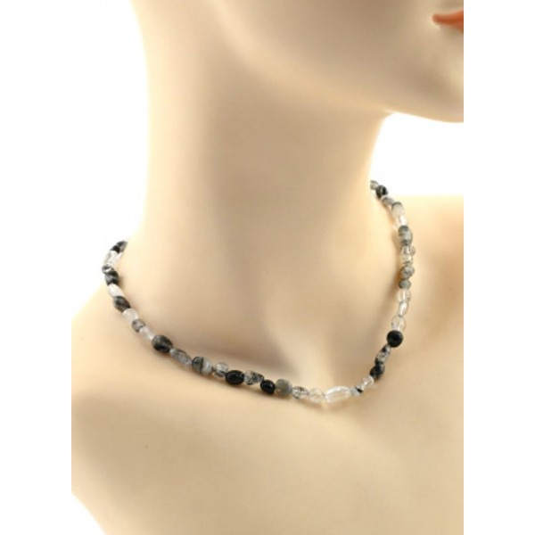 • Бусы из кварца с включением турмалина галтовка, 40см