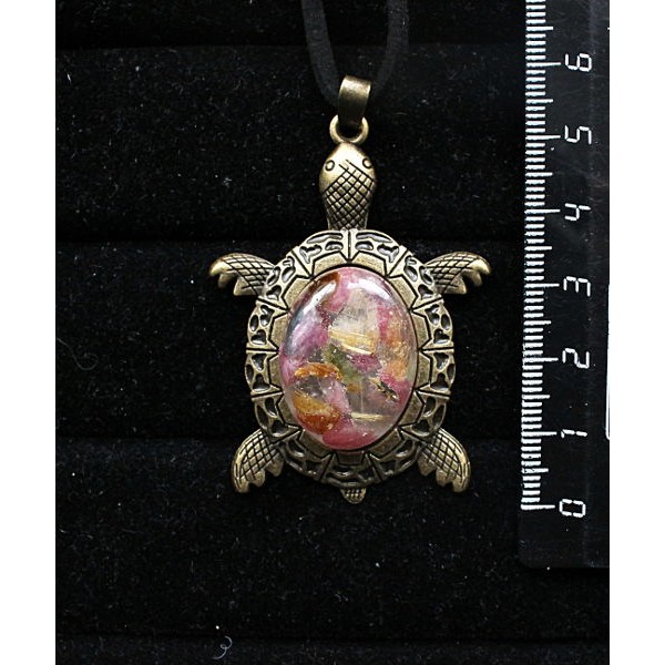 Кулон из турмалина розового (кабошон-мозаика), овал 25х18мм, "черепаха" оправа цвет бронза