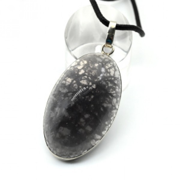 Брошь из флюорита, с ажурным контуром, цвет ант. серебро, овал 25х18мм