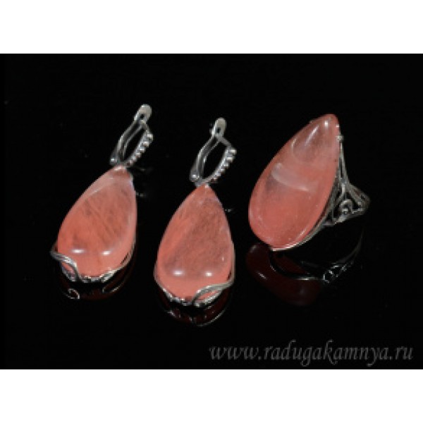Кольцо и серьги с халцедоном (имитация) (иск.)