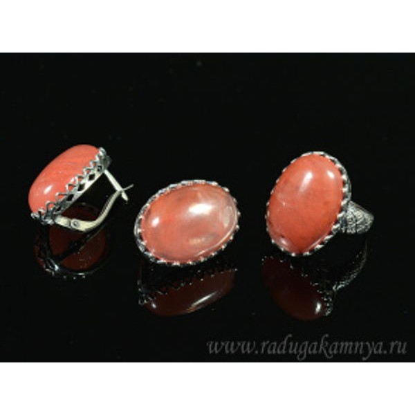 Кольцо и серьги с халцедоном (имитация) (иск.)