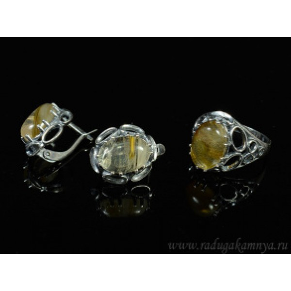 C925 Серьги 7.89г кварц-волосатик овал 16х12мм огранка англ. замок