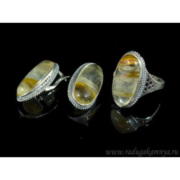 Кольцо с кварцем-волосатиком (зеленые волосы), ова..