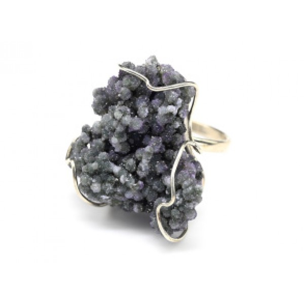 Кольцо из волосатика "гроздь", галтовка