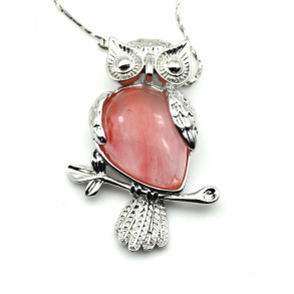 Кулон женский Сова с яшмой красной в металле 18*26..