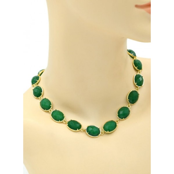 Колье в металле с хризопразом искусственным, 40см (иск.)