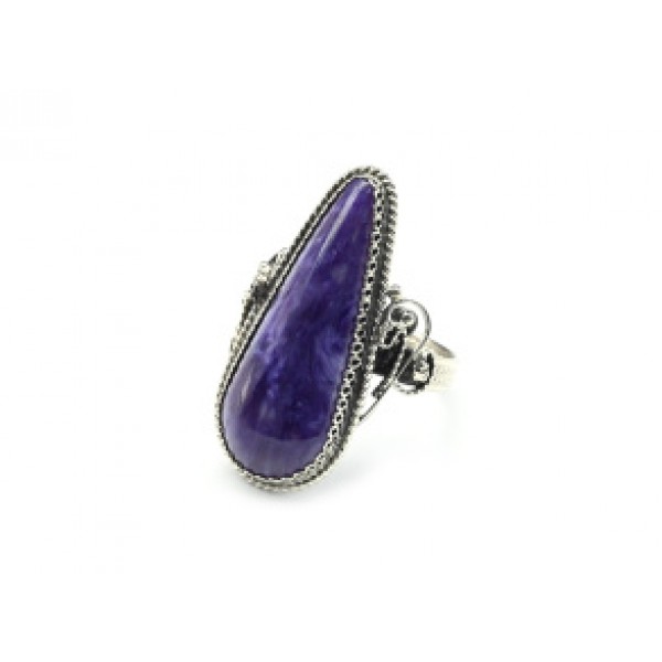 Кольцо с чароитом "Капля" 16*36мм