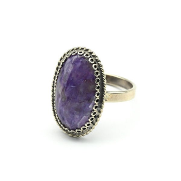 Кольцо чароит "Овал" 13*21мм