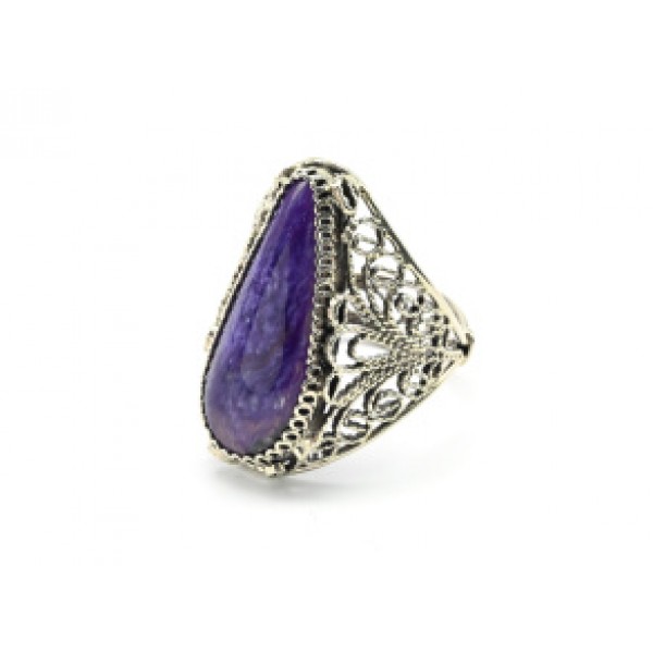 Кольцо с чароитом "Капля" 15*30мм..