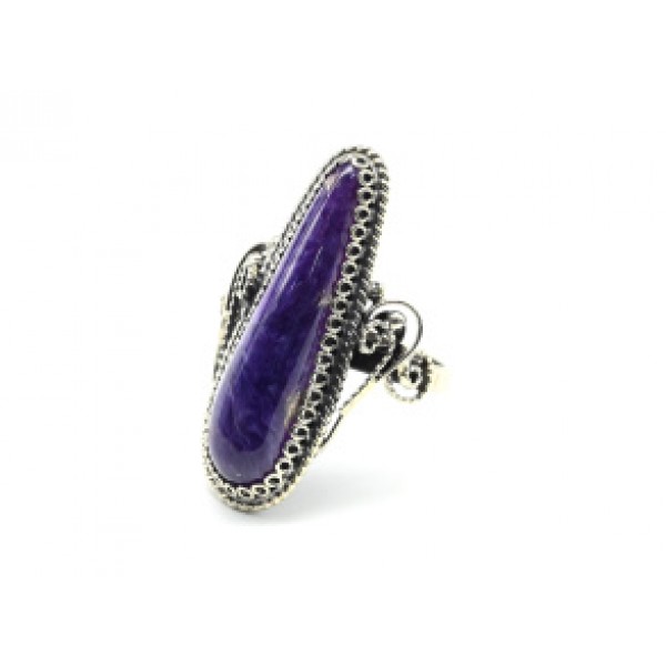 Кольцо с чароитом "Капля" 15*30мм..