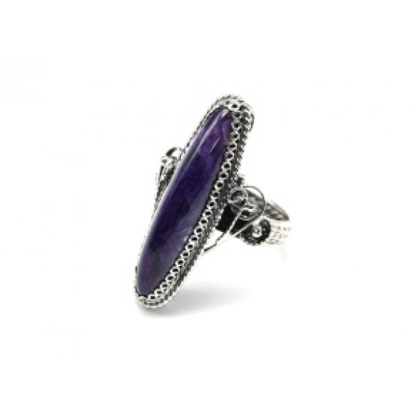 Кольцо чароит "Овал" 10*34мм