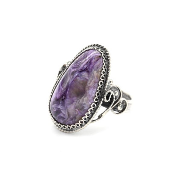 Кольцо чароит "Капля" 16*26мм