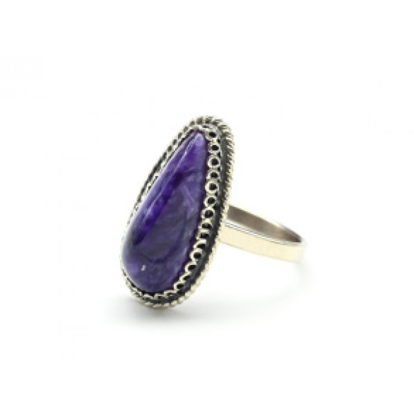 Кольцо с чароитом "Капля" 11*21мм