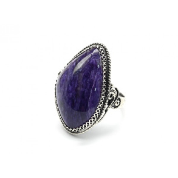 Кольцо с чароитом "Капля" 15*30мм..