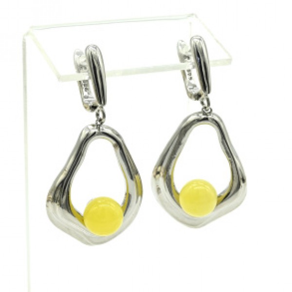 Оригинальные серьги с янтарём "Шарик в капельке" 21*30мм цвет молочный, 7,6г (иск.)