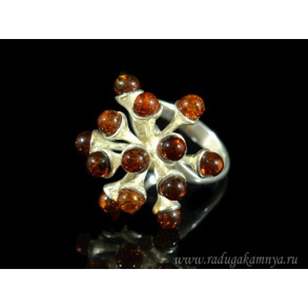 Кольцо с янтарём в посеребрении салют 21*25мм коньячный (иск.)