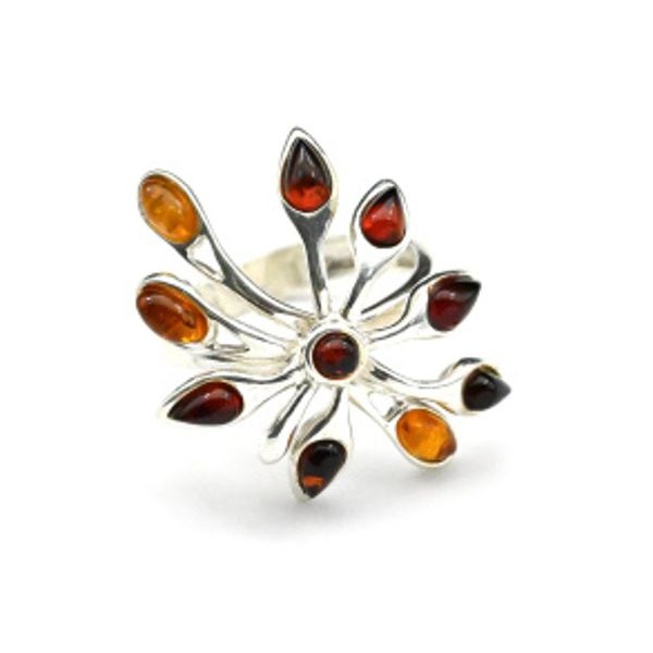 Кольцо с янтарем C925 "салют" 24*27мм коньячный, медовый , 4,87гр (иск.)