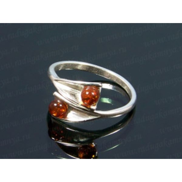 • Кольцо посеребрененное с янтарём парочка шарик 4мм коньячный (иск.)