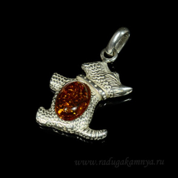 Кулон с янтарём в посеребрении собачка 31*23мм коньячный. (иск.)