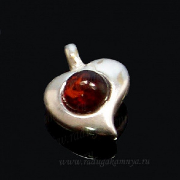 Кулон с янтарём в посеребрении "листочек" 12мм коньячный (иск.)
