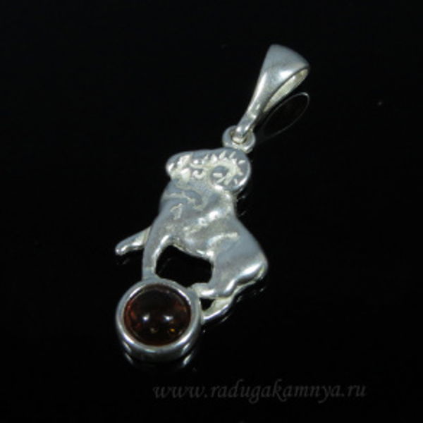 • Кулон с янтарём в посеребрении знак зодиака овен 15*25мм коньячный (иск.)