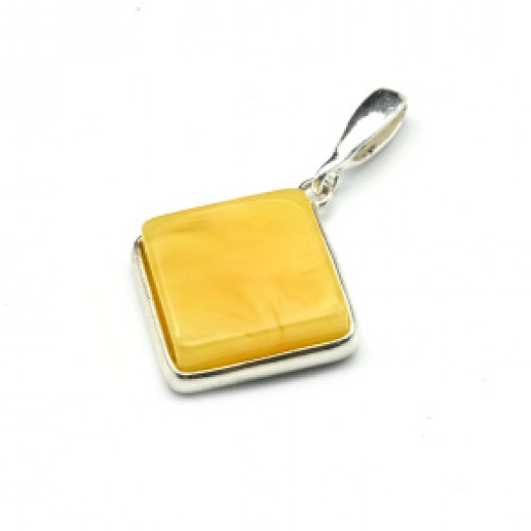 Кулон с янтарём в посеребрении ромб 21*21мм цвет медовый (иск.)