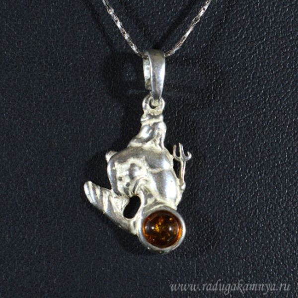 Кулон с янтарём в посеребрении знак зодиака водолей 14*22мм коньячный (иск.)