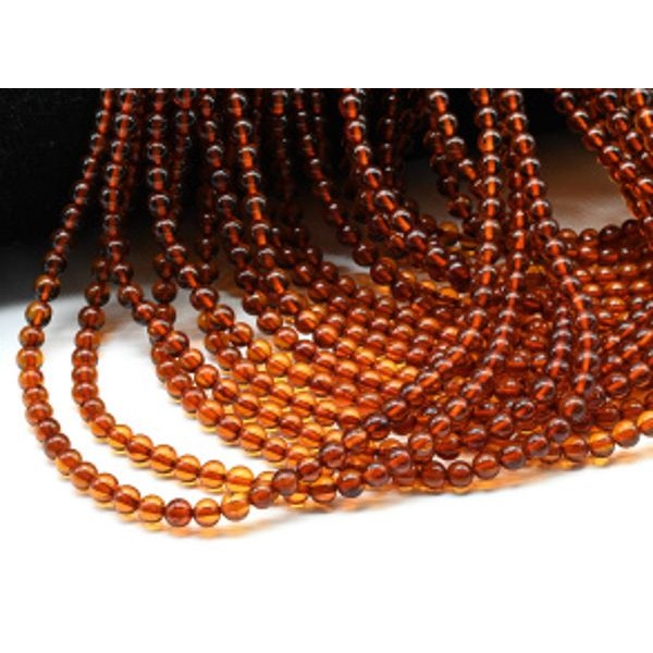Бусины из янтаря шарик 4мм цвет коньячный, 38,5см, 90 бусин