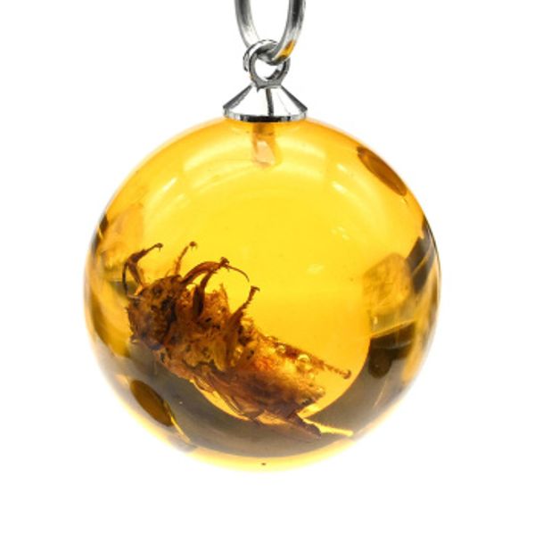 Кулон шарик из янтаря с инклюзом 20мм цв.светло-коньячный (иск.)