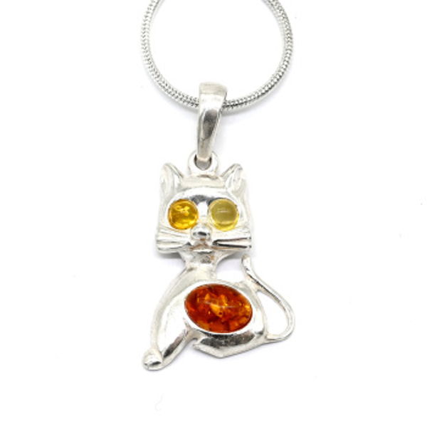 Кулон с янтарём в посеребрении Котёнок 16*25мм цвет коньячный, лимонный