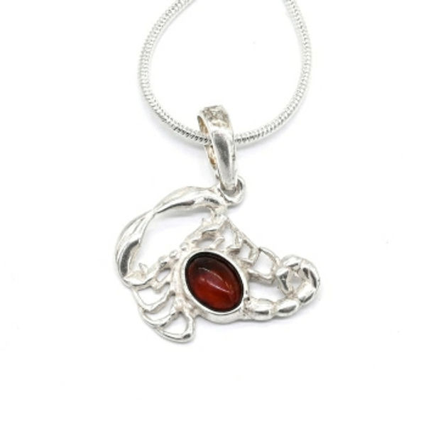 Кулон с янтарём в посеребрении знак зодиака Скорпион 20*18мм цвет коньячный