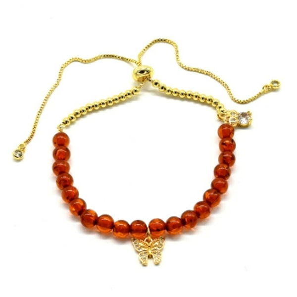 Браслет с шариками из янтаря 6мм цвет коньячный, золотистый, 17см (иск.)